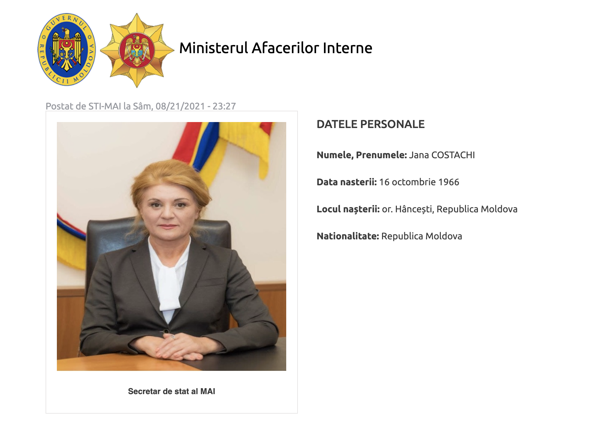 Sora lui este Jana Costachi, secretar de stat la Ministerul Afacerilor Interne.