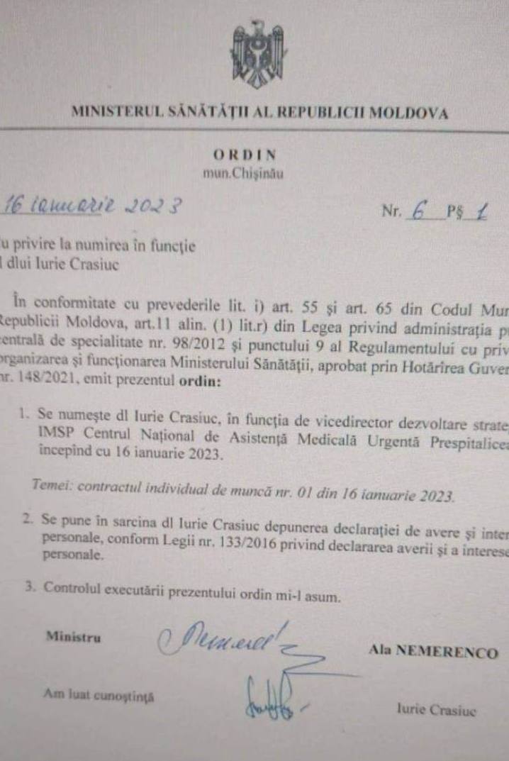 Imediat după ce a dat-o afară acolo, la Salvare, viceȘef a fost numit Iurie Crasiuc: