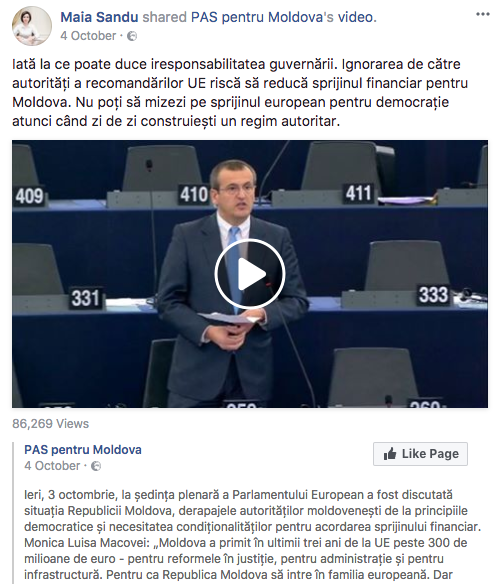 Iată ce scria, pe contul său de facebook, Maia Sandu, pe 4 octombrie: