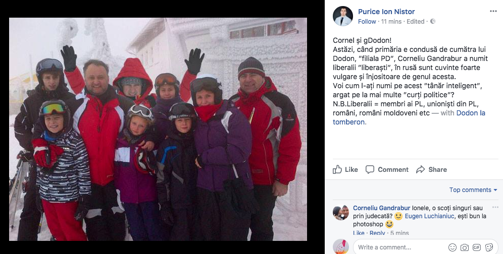 După asta m-a blocat frumușel și a mai editat postarea adăugând zoom-uri pe fața lui Dodon și a lui Cornel: