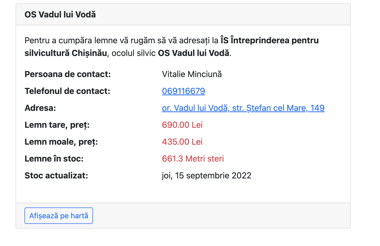 Așadar, am deschis site-ul lemne.md și iată ce ne arată în raza localității Budești, una din cele menționate pe anunț: