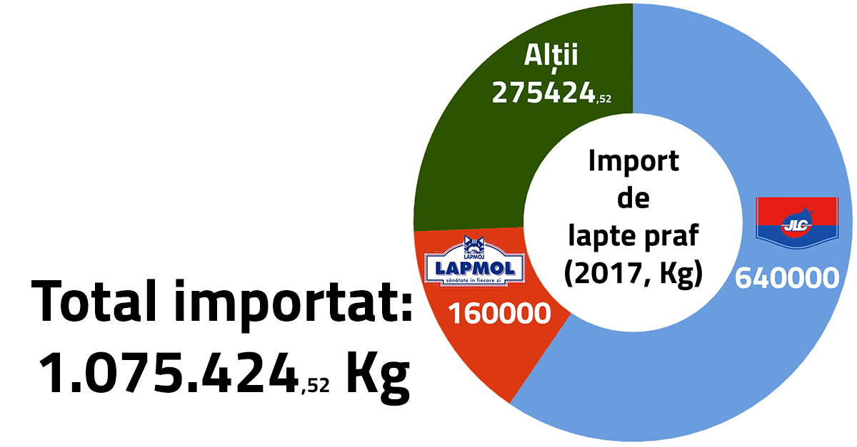 În 2017 în Moldova s-a importat 1.075.424,52 kilograme de lapte praf. Din acest volum 640.000 klograme au fost importate de JLC din Ucraina. Lapmol a importat în total 160.000 kilograme de lapte praf dintre care 80 de tone din Slovacia și 80 de tone din Lituania.
